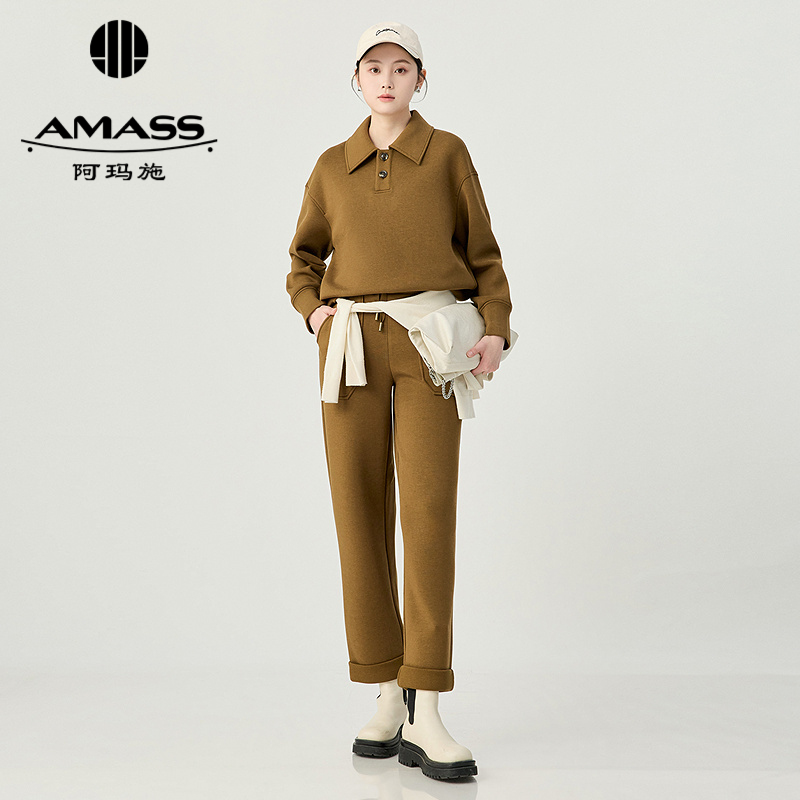 阿玛施AMASS 简约休闲舒适随性翻边裤脚抽绳松紧腰长裤510015