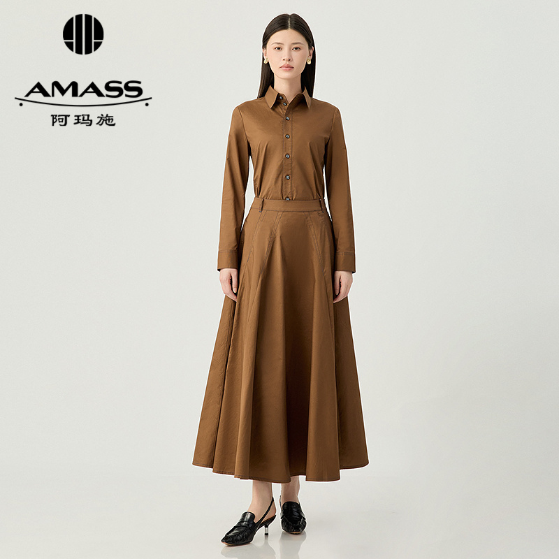 阿玛施AMASS 复古明线设计舒适大下摆伞裙520017