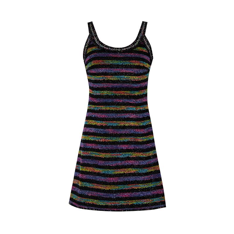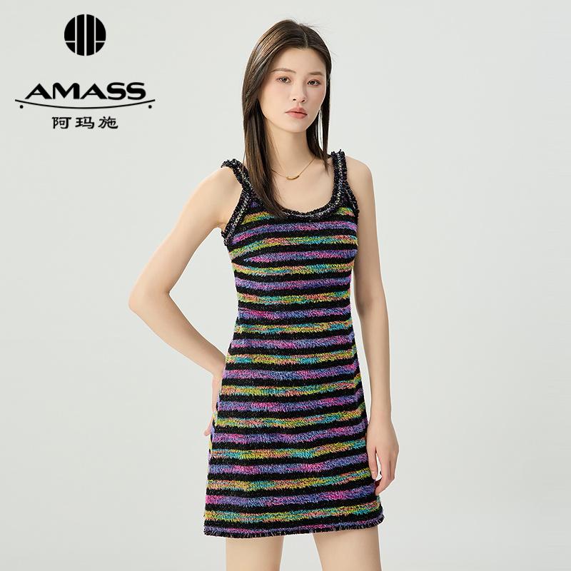 阿玛施AMASS 炫彩紫色细闪毛绒感背心式短款连衣裙550006