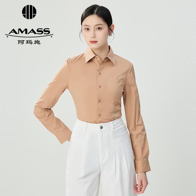 阿玛施AMASS 经典百搭通勤基础款收身显瘦棉质长袖衬衫530022