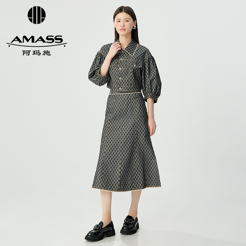 阿玛施AMASS 泡泡袖仿牛仔短款复古格纹外套540003