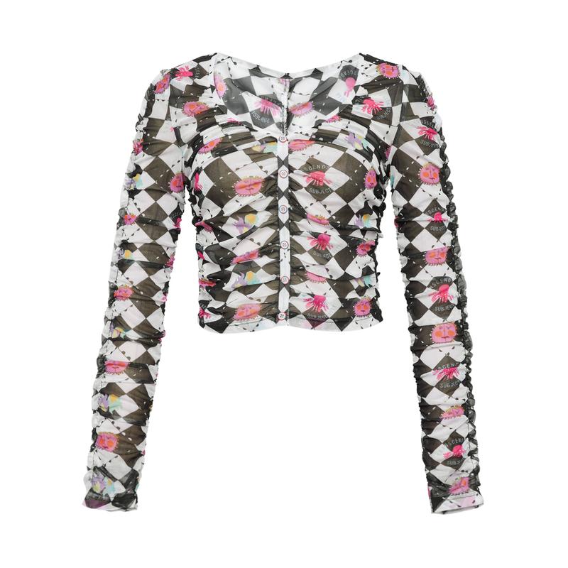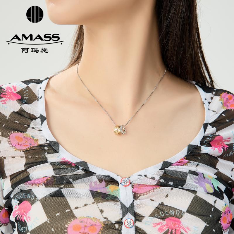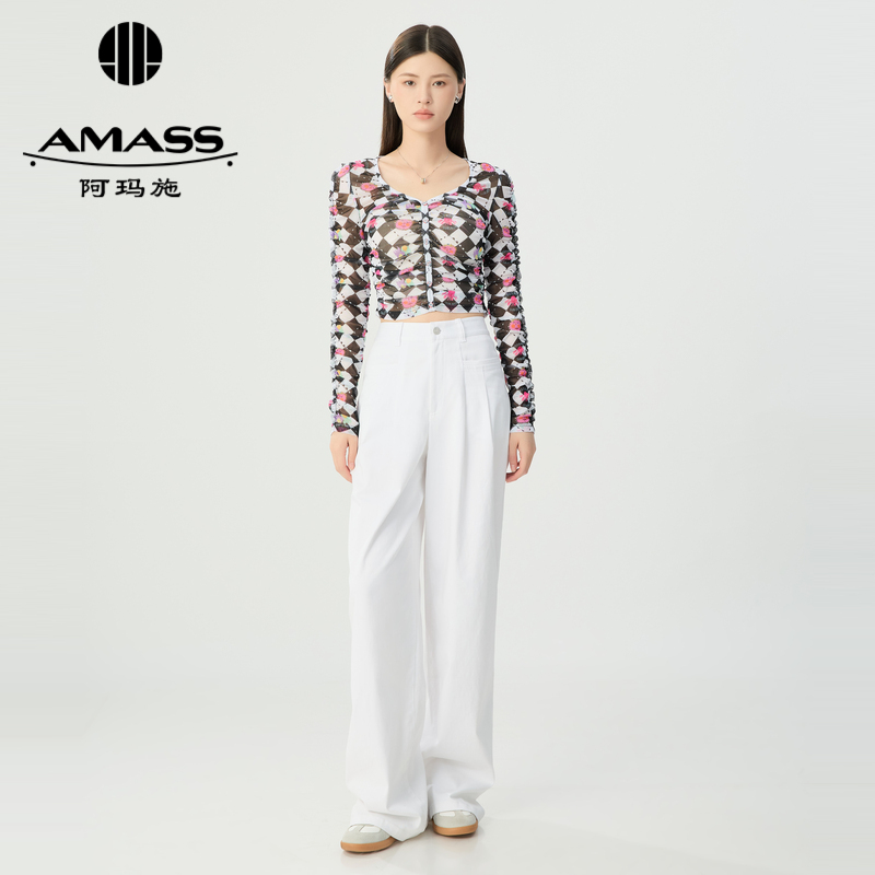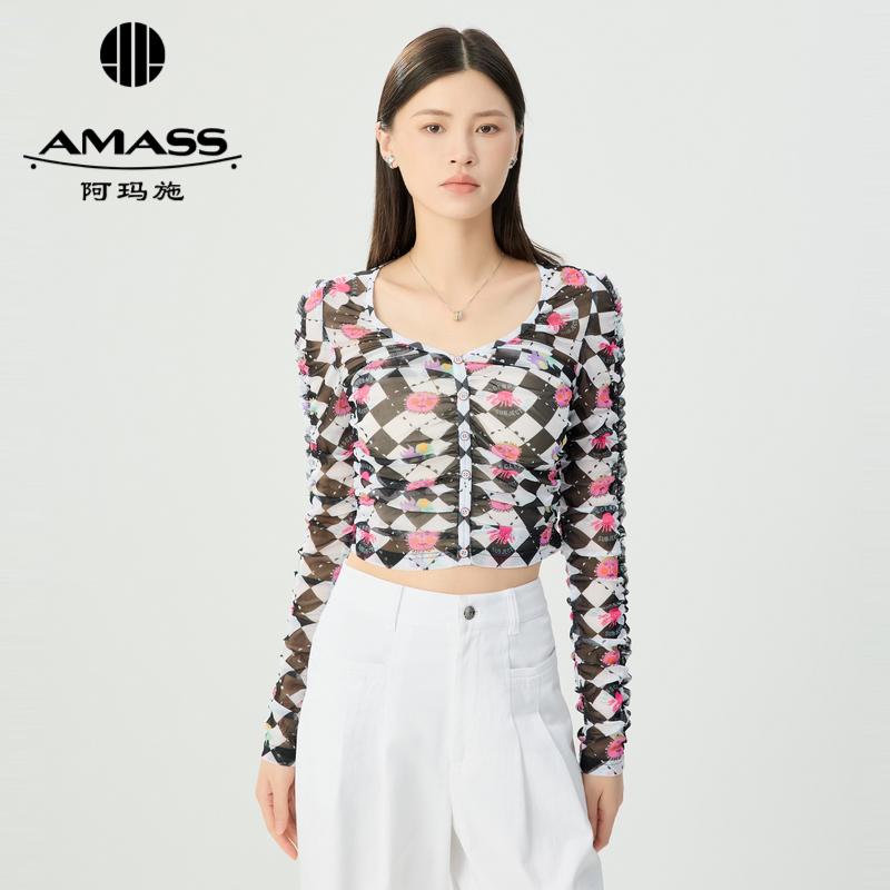 阿玛施AMASS 色彩印花造型修身丝网纱衣5301067