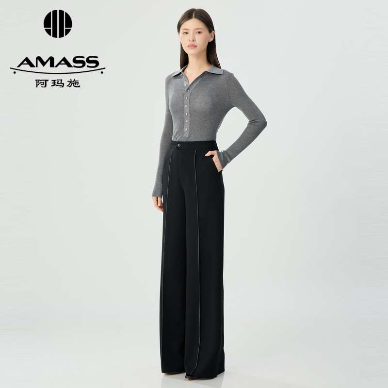 阿玛施AMASS 时尚简约前腿竖线明线设计直筒长裤510050