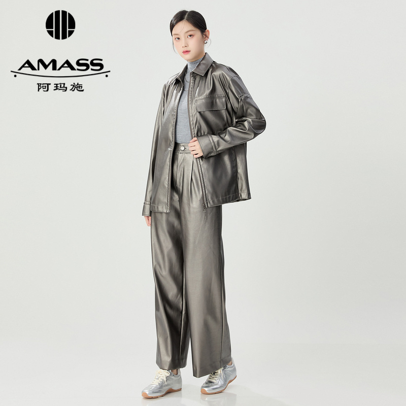 阿玛施AMASS 新款时尚时髦酷girl刷银翻领夹克外套5400822