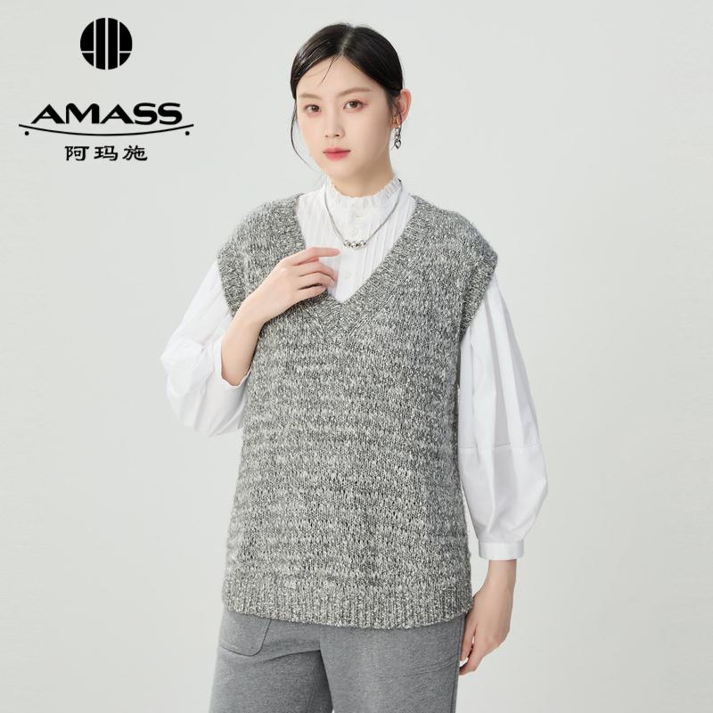 阿玛施AMASS 慵懒松弛走染花纱V领针织马甲5399770