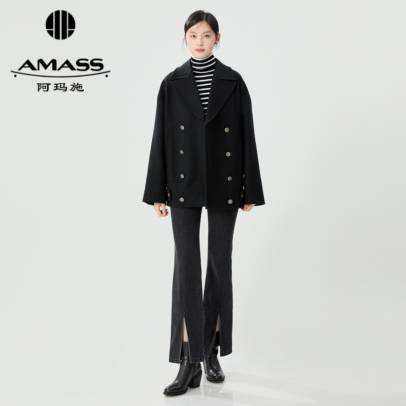 阿玛施AMASS 双排扣中长款廓形羊毛外套5400821