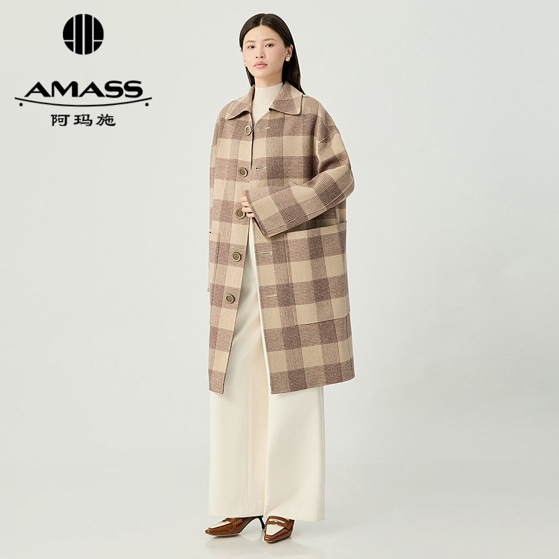 阿玛施AMASS 热力感排扣翻领羊毛中长双面呢长袖外套女5400862