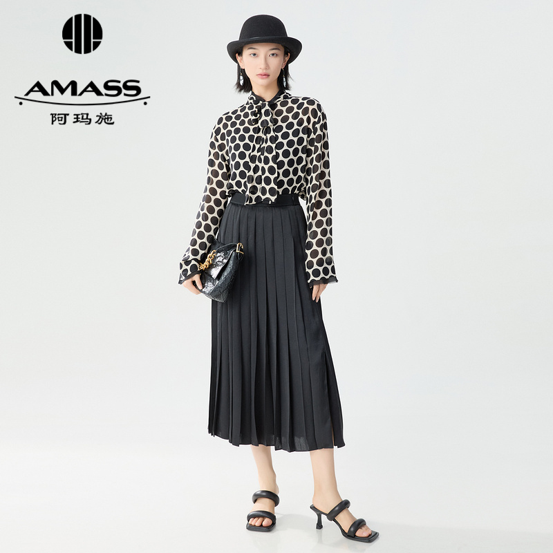 阿玛施AMASS 优雅气质透纱波点衬衫5301012