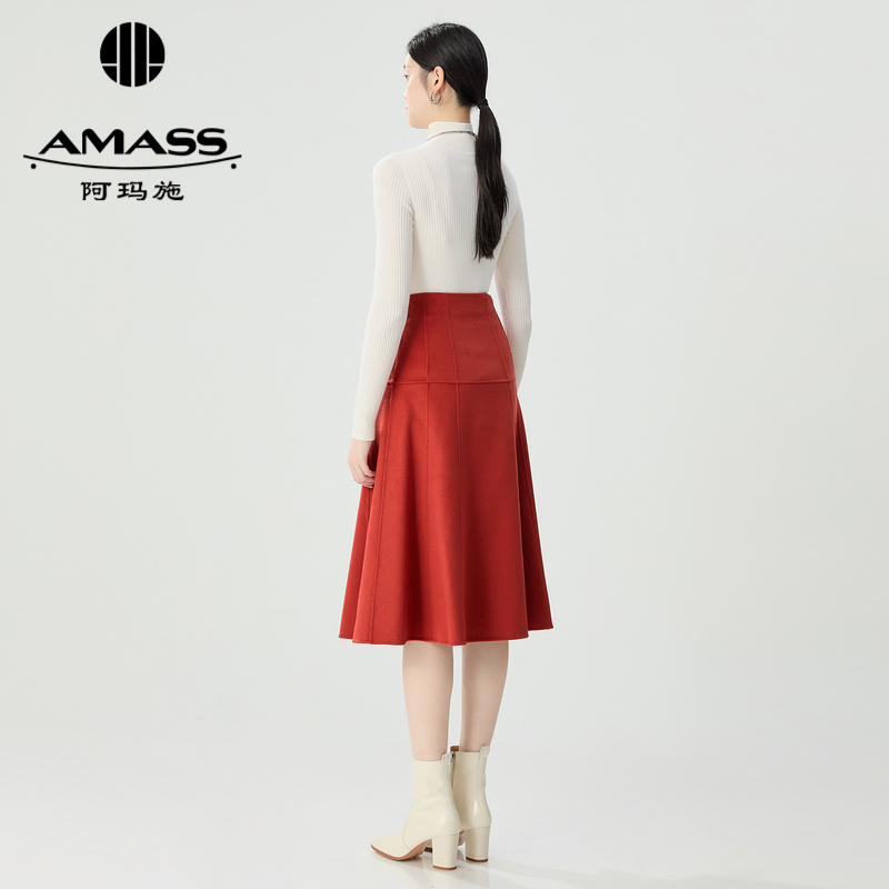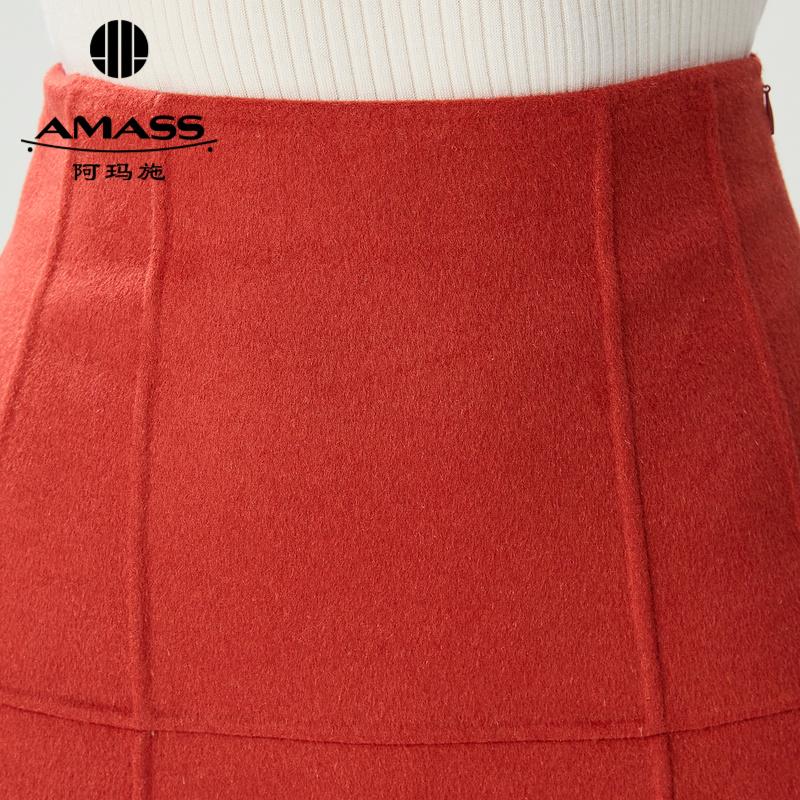 阿玛施AMASS 品质女装新款时尚简约气质纯色双面呢半身伞裙5200406