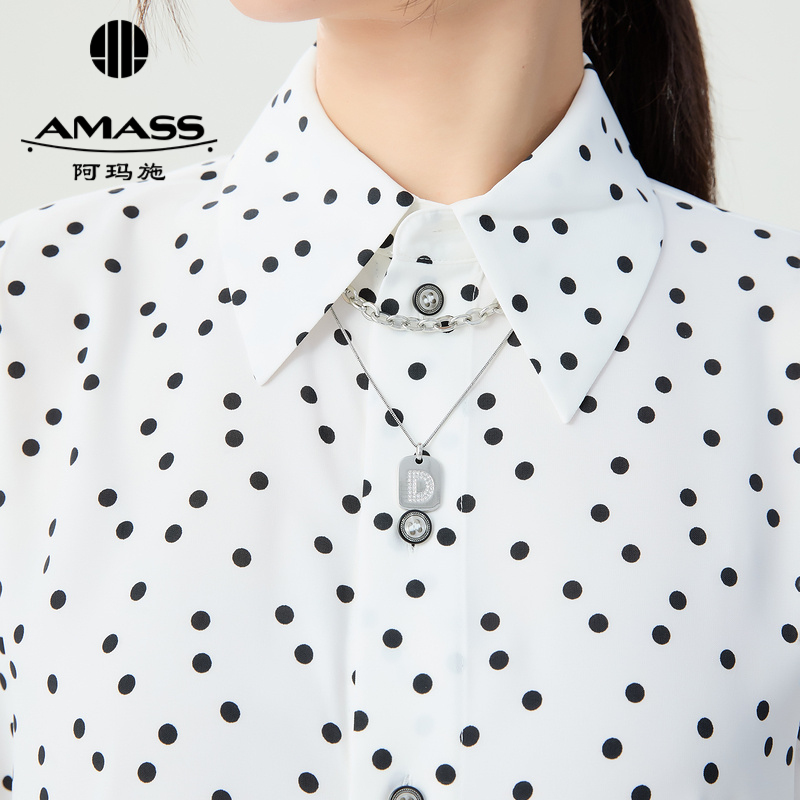 阿玛施AMASS 时尚通勤复古波点翻领长袖气质衬衫女5301098