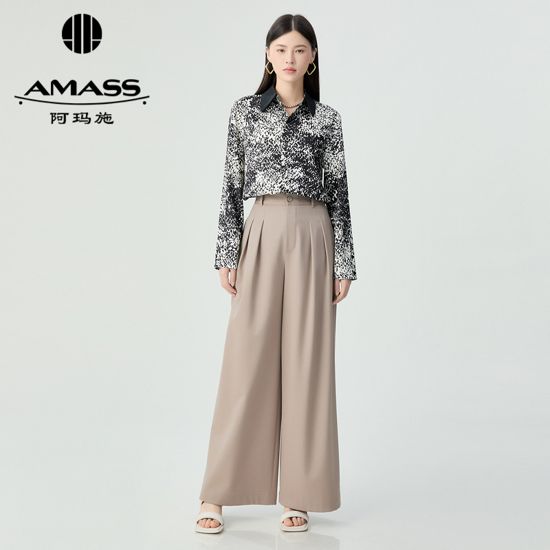 阿玛施AMASS 时尚精致简约拼接翻领长袖衬衫女5301098