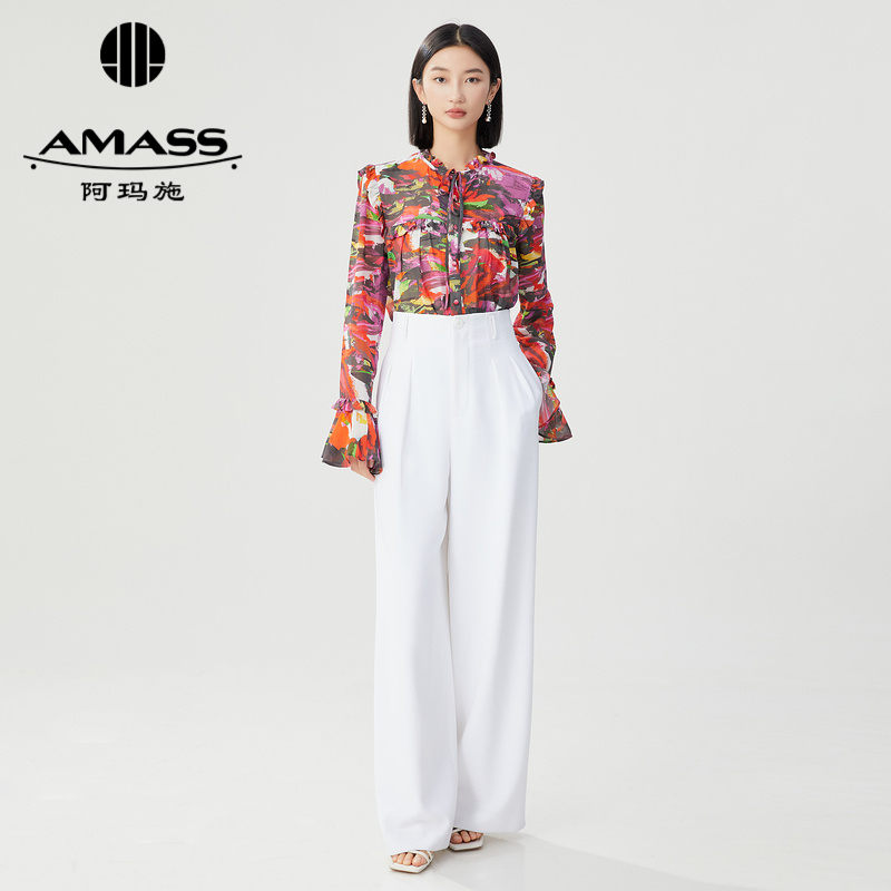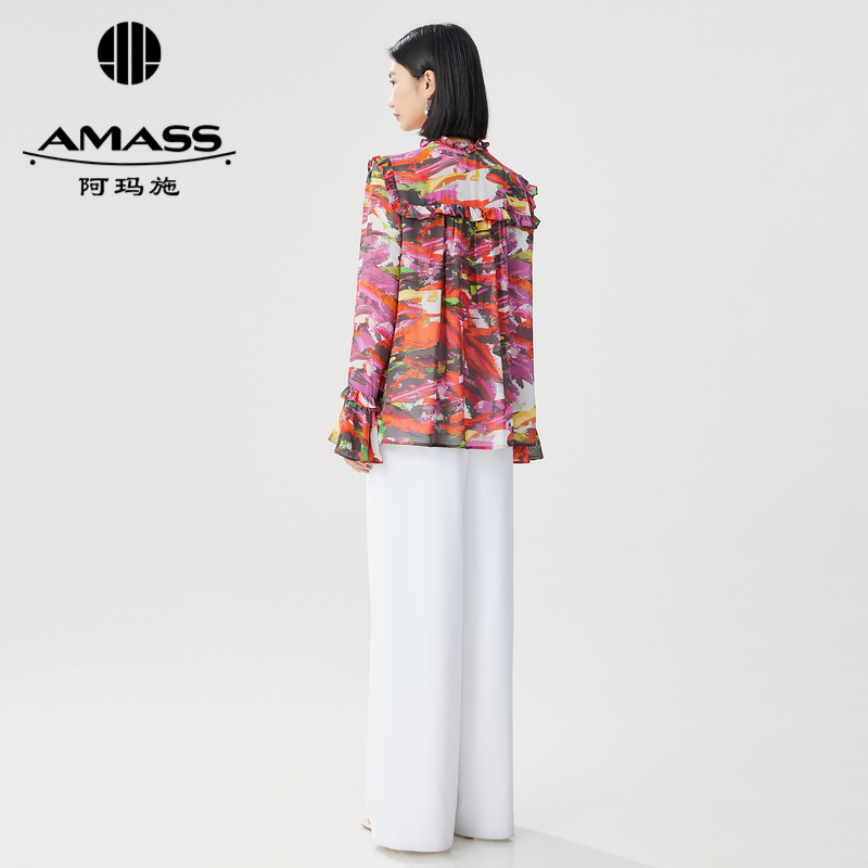 阿玛施AMASS 轻盈优雅感浪漫荷叶边飘纱衬衫5301020