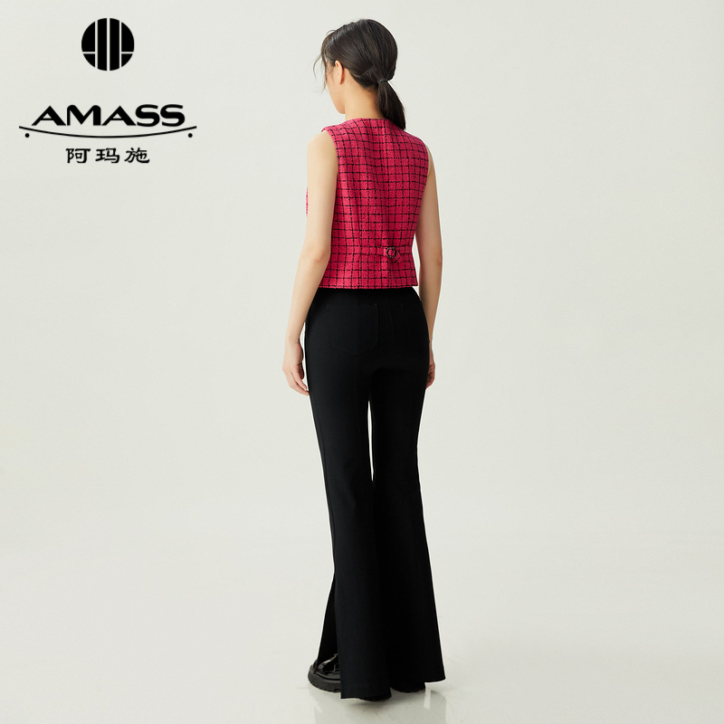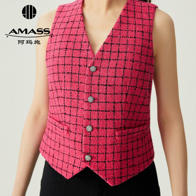 阿玛施AMASS 百搭复古亮桃色格纹西装小马甲5400763