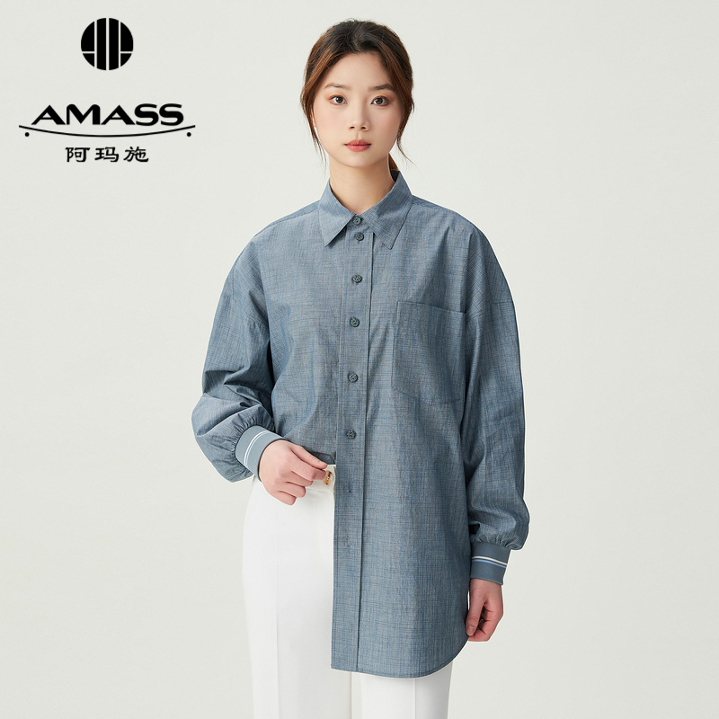 阿玛施AMASS 随性中性男友风廓形沙士灰衬衫5301081