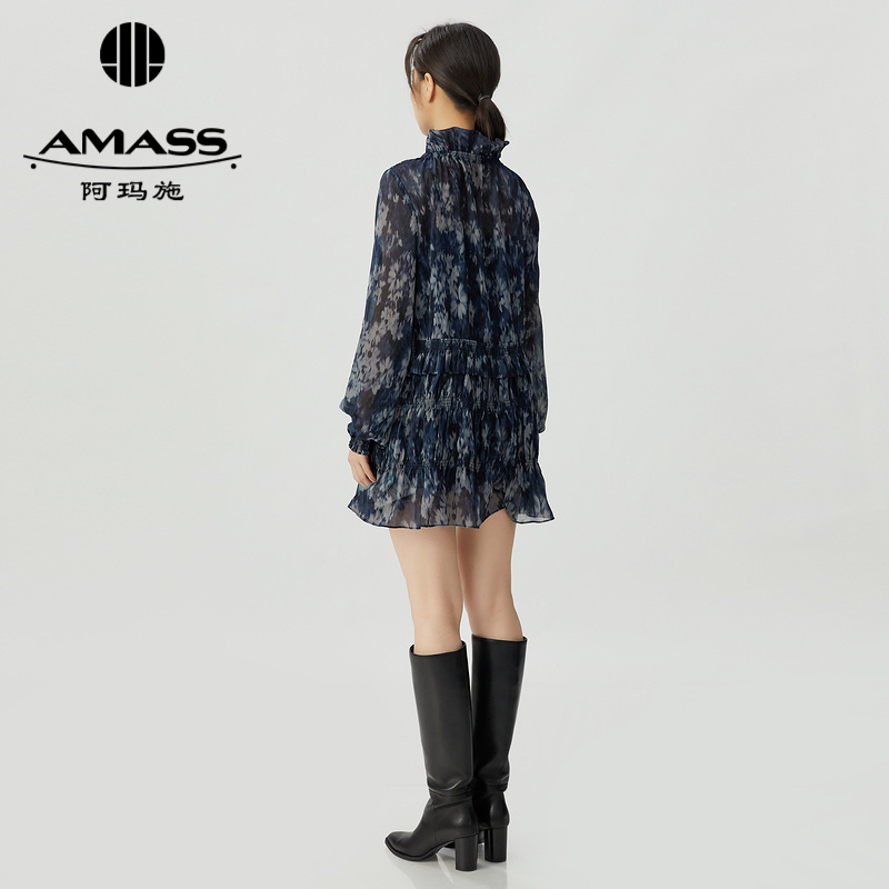 阿玛施AMASS新款复古法式荷叶边直身型飘逸短款浪漫洋装5500524
