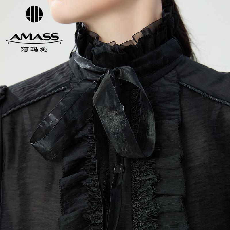 阿玛施AMASS新款女装高级款精致复古宫廷风纯色衬衫5301033