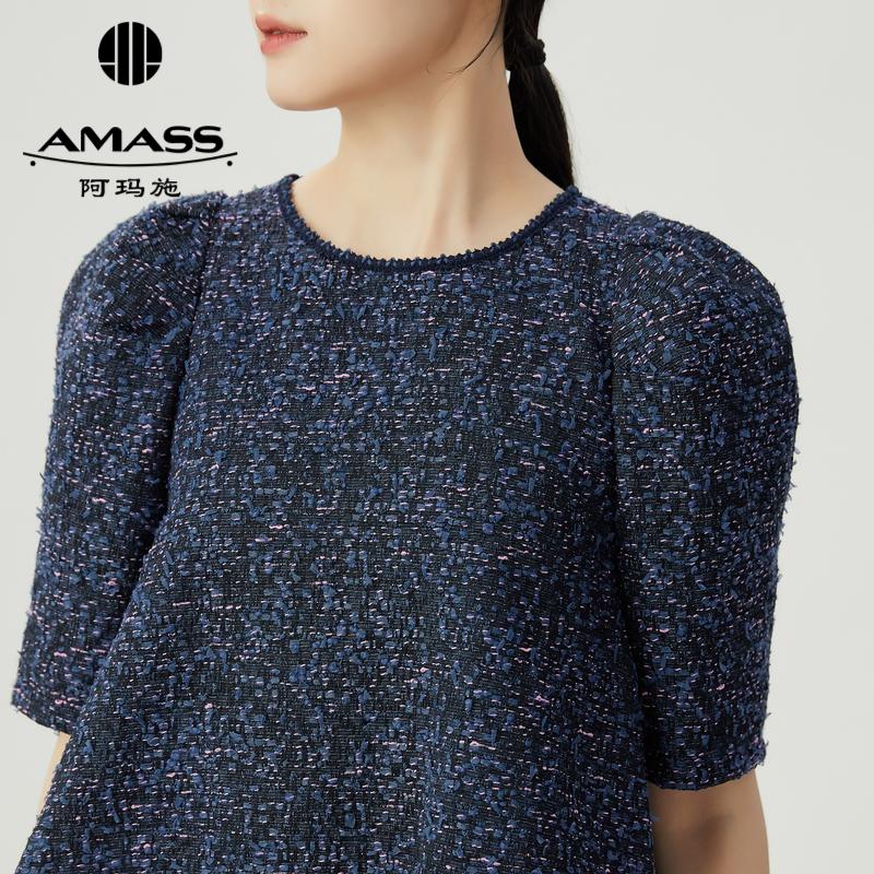 阿玛施AMASS 精致千金风花呢羊腿袖短袖上衣5301026