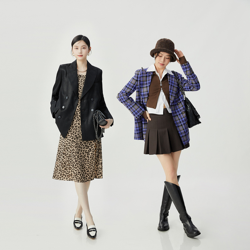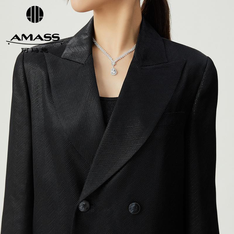 阿玛施 AMASS 复古英伦学院风中长款廓形格纹西装5400868