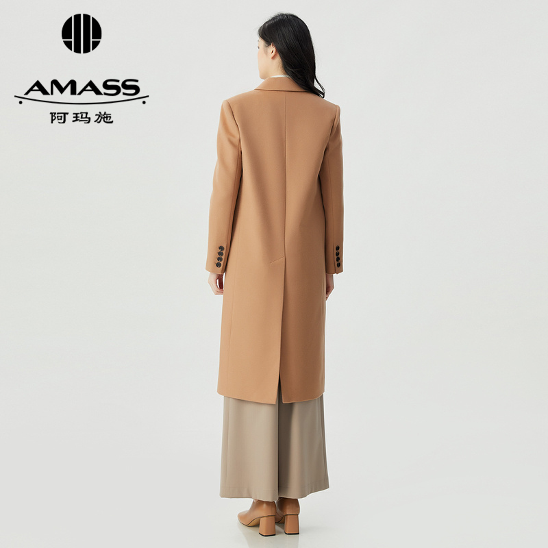 阿玛施AMASS 秋冬羊毛羊绒混纺西装式质感复古气质大衣5400810-2