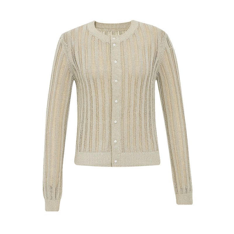 哥弟  圆领透气简约百搭长袖针织开衫148015