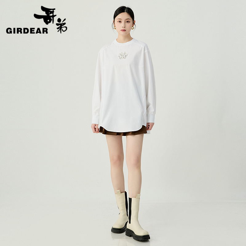 哥弟 精致手工珠钻龙头卫衣式圆领衬衫130044