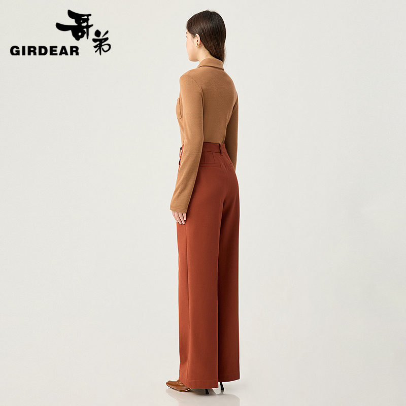 哥弟 高腰立体车褶设计直筒长裤1100516