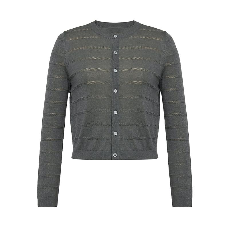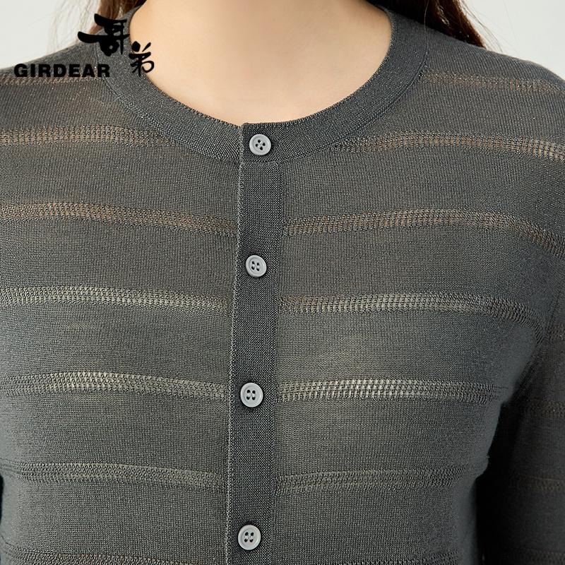哥弟  圆领葱纱微闪效果长袖针织开衫148030