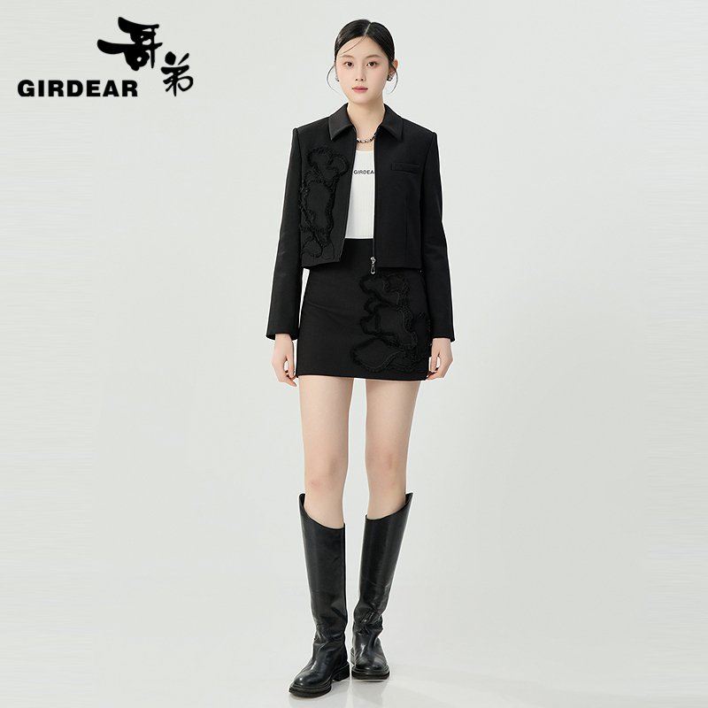 哥弟 马蹄莲系列精致小翻领拉链短外套140015
