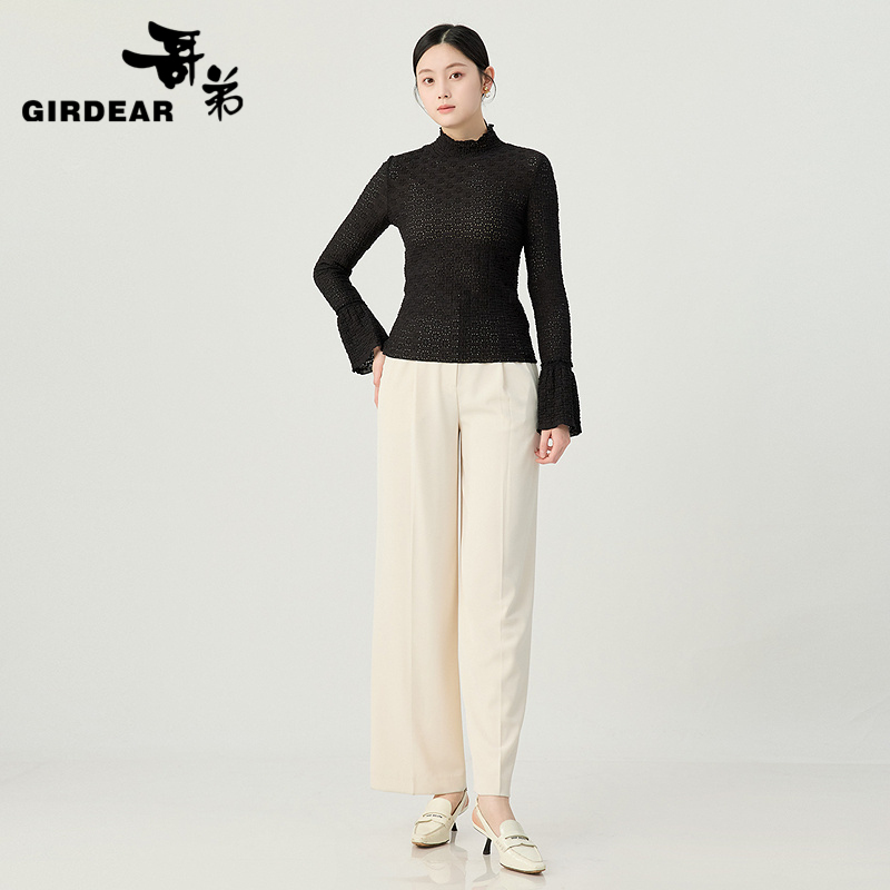 哥弟 烟管领立体提花马蹄袖套头衫1301035