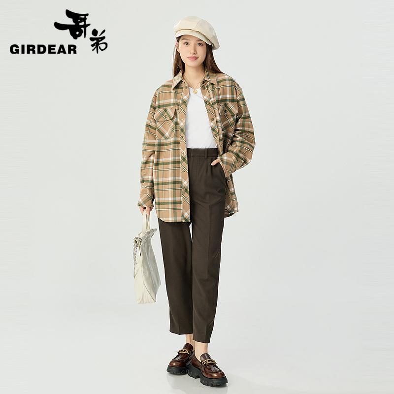哥弟 侧腰松紧高级垂感百搭烟管裤1100455