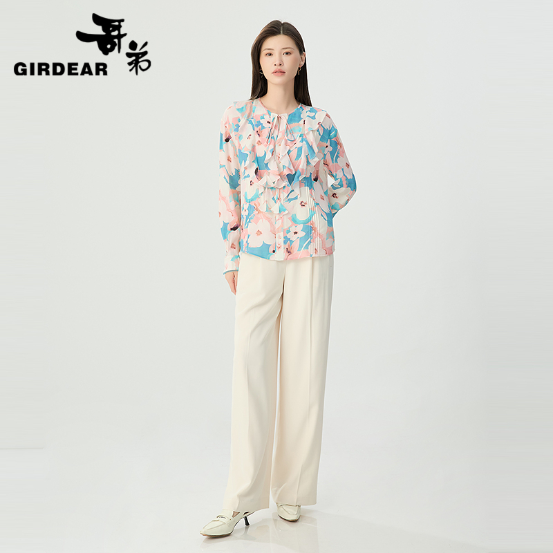 哥弟 高级通勤垂感高腰阔腿裤1100235