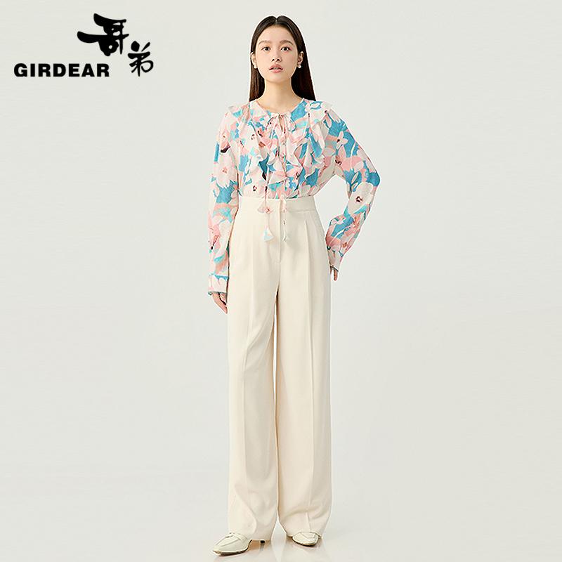 哥弟 圆领多层荷叶边长袖衬衫1301023