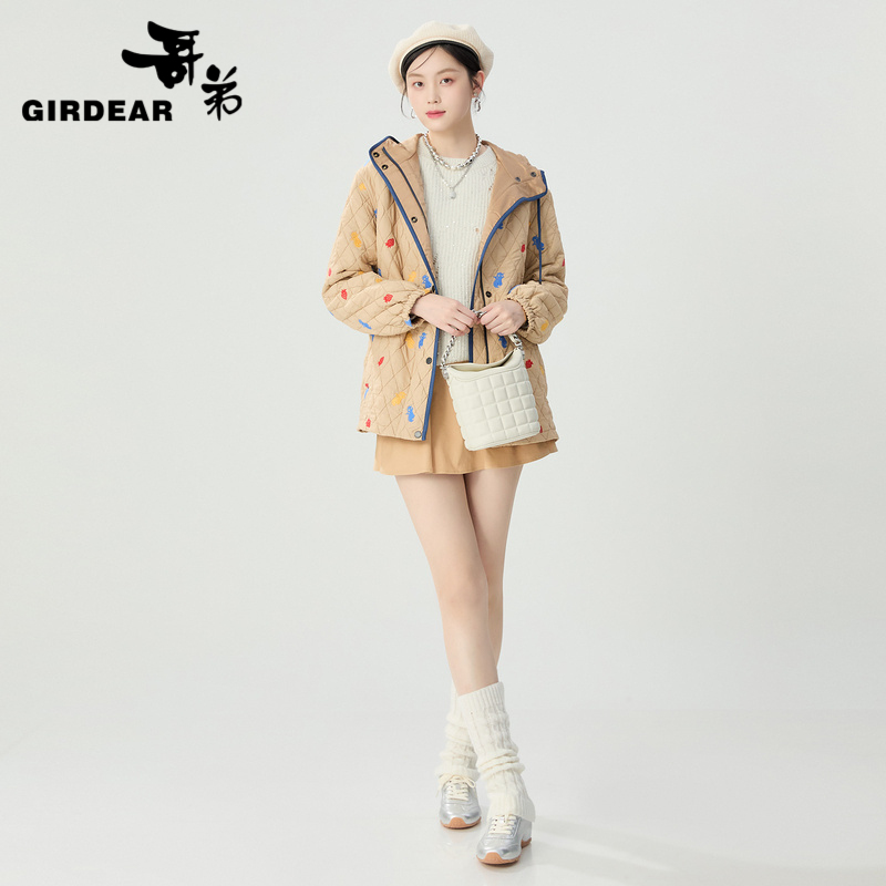 哥弟 绗棉彩色绣花休闲棉服外套1400720