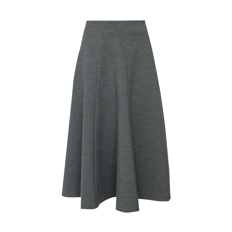 哥弟 优雅斜线拼接设计高腰羊毛伞裙1200378