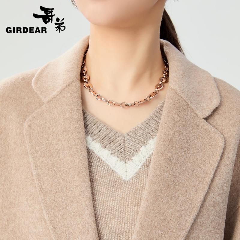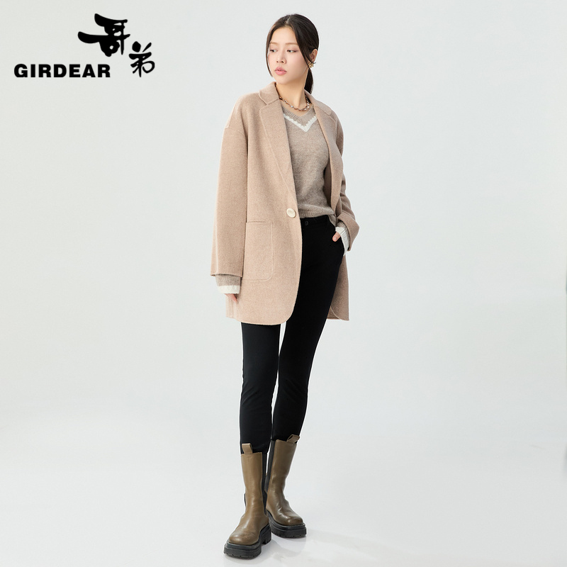 哥弟 H版翻领中长款一粒扣双面呢大衣外套1400770