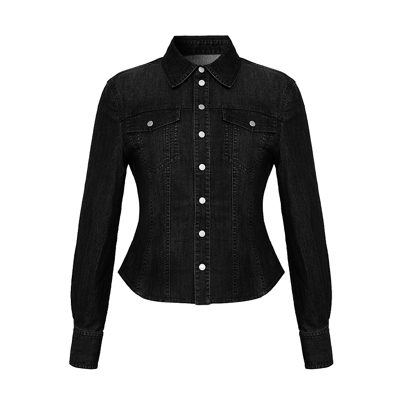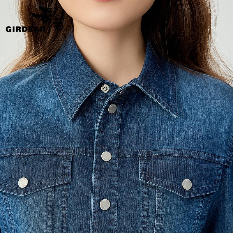 哥弟 复古收腰曲线感翻领长袖衬衫1301061