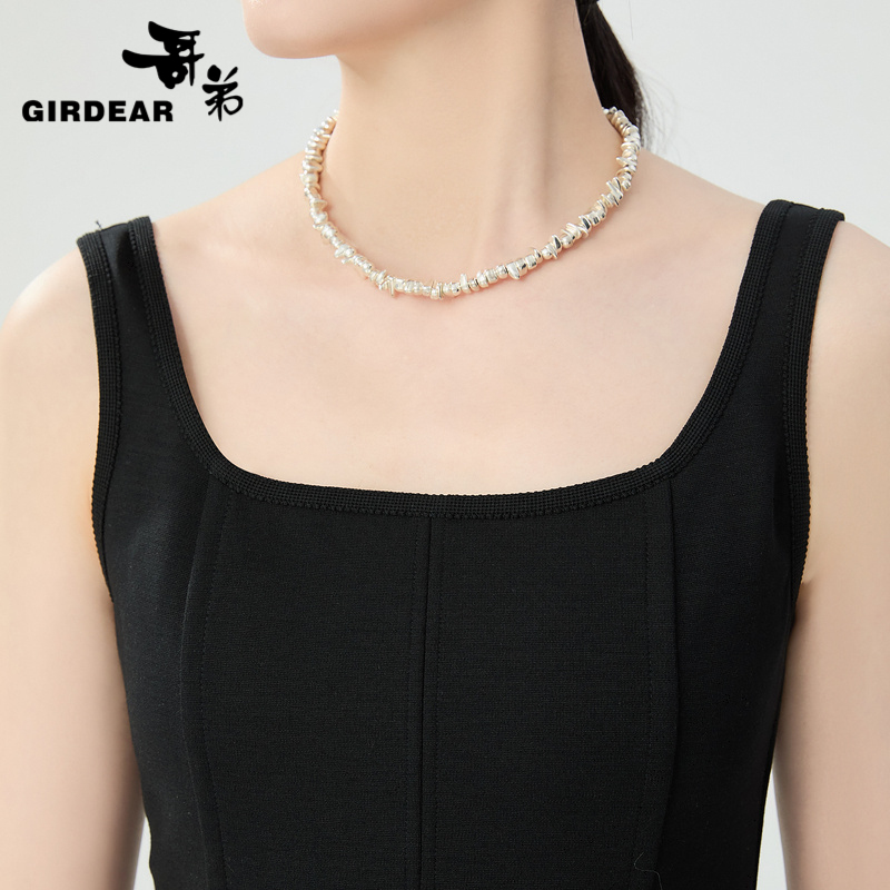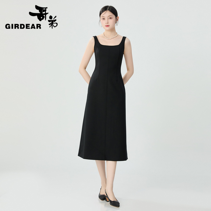 哥弟 气质U领宽肩带羊毛连衣裙1500474