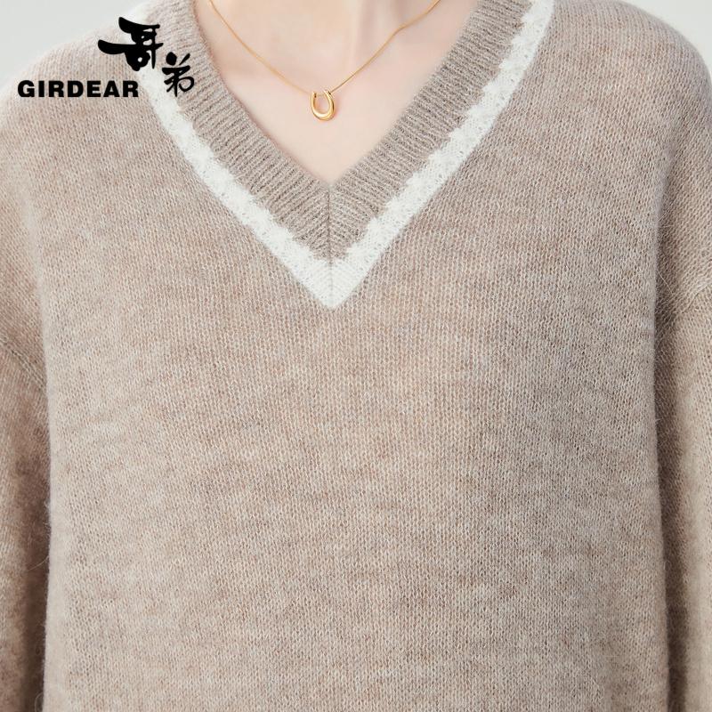 哥弟 减龄学院风小V领宽松软糯套头针织衫1399754