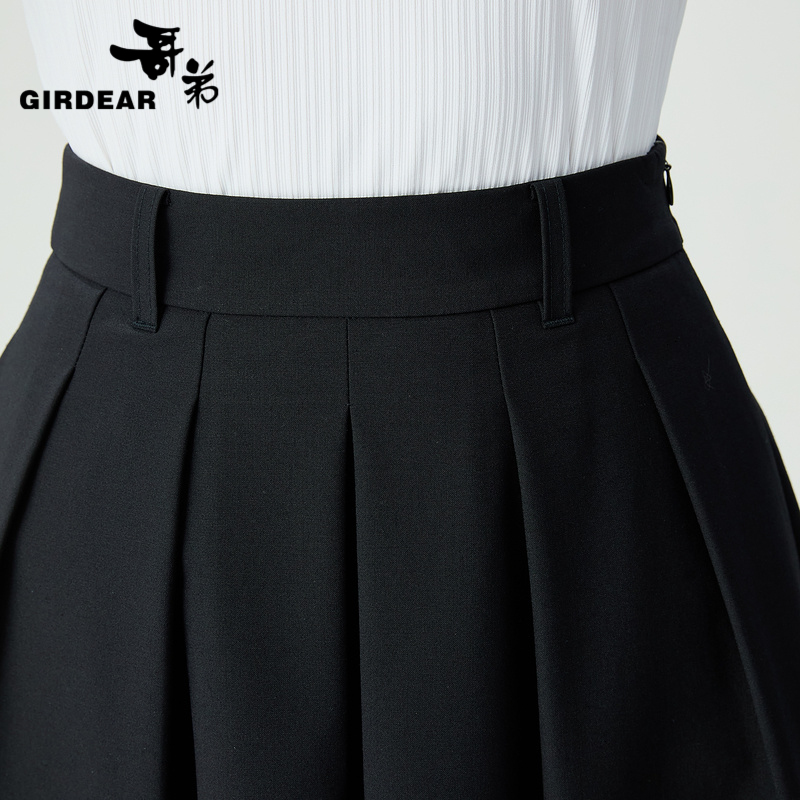 哥弟 高腰中长款羊毛半身伞裙1200375