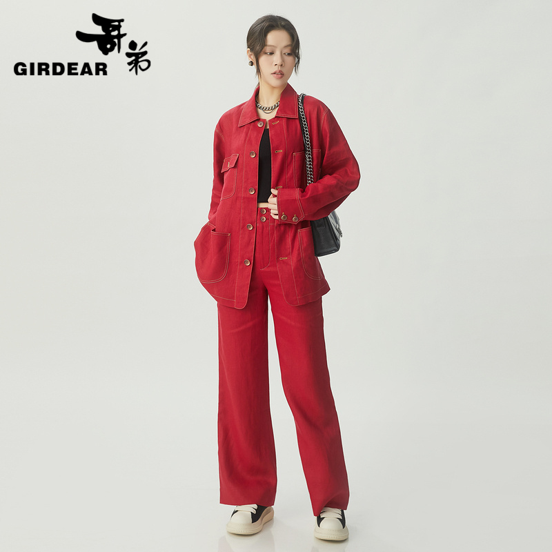 哥弟 宽松简约松弛感亚麻阔腿裤1100484