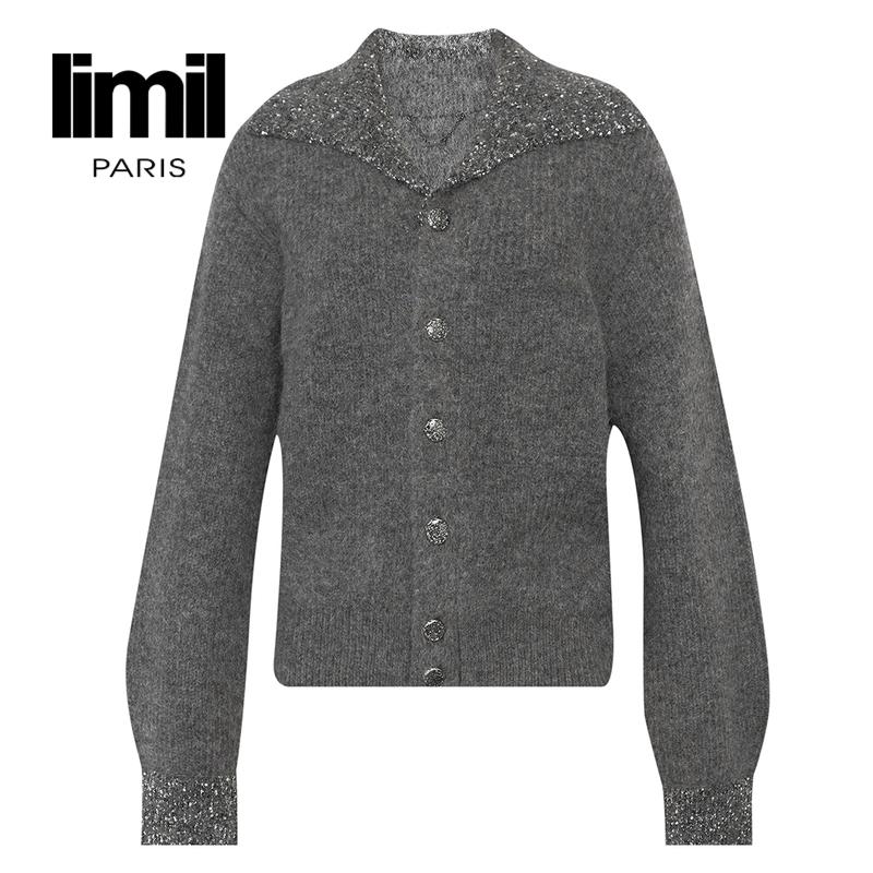丽米儿limil 复古气质细闪罗纹翻领纽扣长袖毛衣9499032