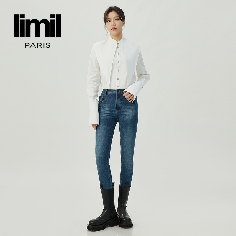 丽米儿limil 通勤简约气质俏皮大尖领白衬衫9300175