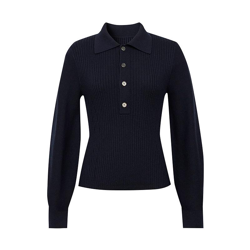 DEEP BREATH深呼吸女装 简约POLO领半门襟纽扣灯笼袖针织衫A301819