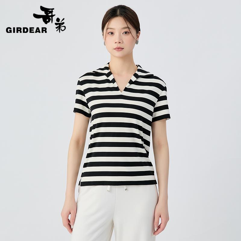 哥弟 柔软亲肤Polo领条纹短袖T恤130081