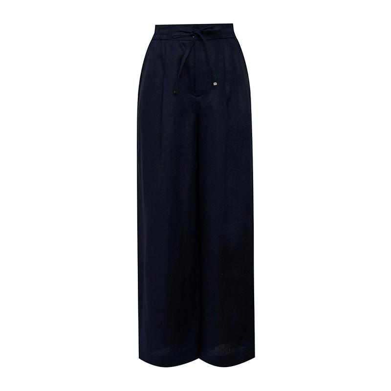 哥弟  高腰松驰感两侧松紧系带亚麻直筒裤110002