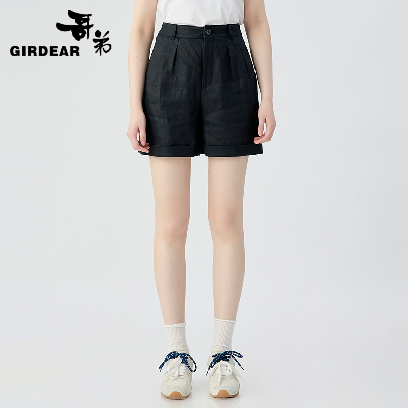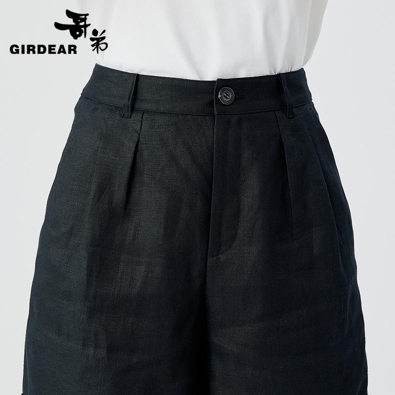 哥弟 高腰透气亚麻中短裤110025