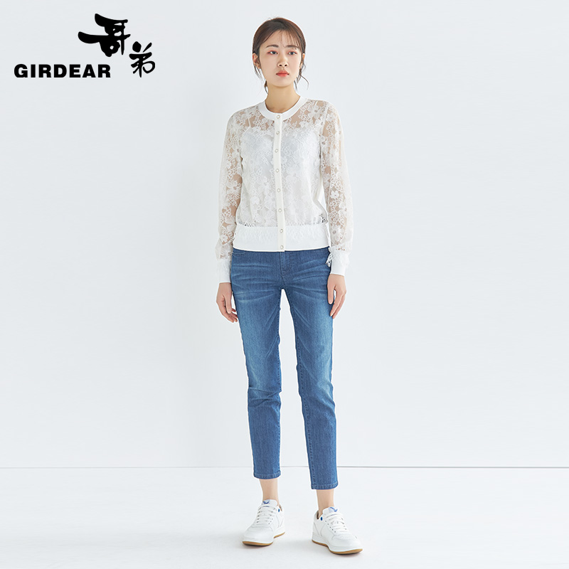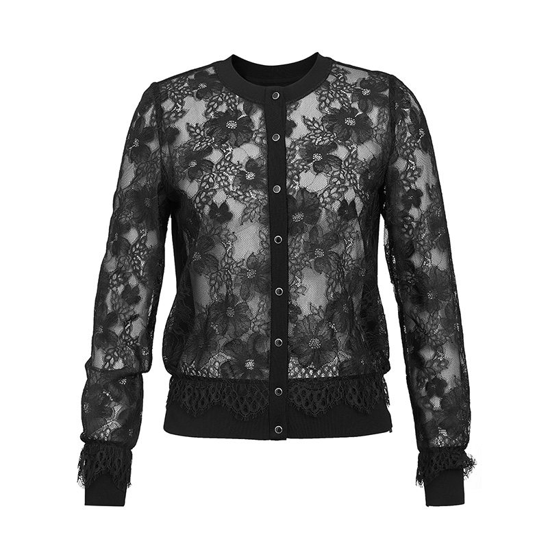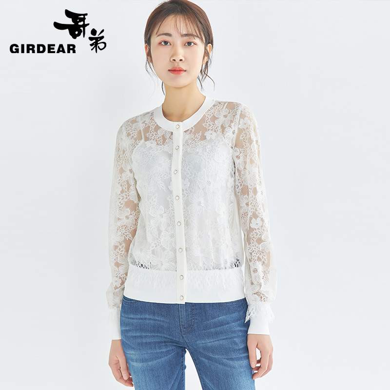 哥弟女装 优雅圆领单排扣蕾丝外罩外套1400376