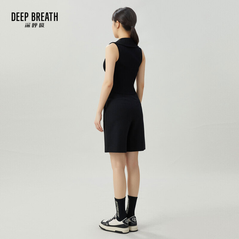 DEEP BREATH深呼吸女装 纯色套头半拉链竖坑条无袖针织衫A301175