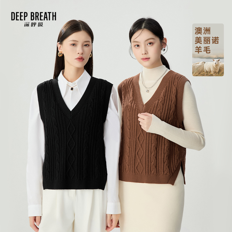 DEEP BREATH深呼吸女装 简约纯色无袖侧开叉V领廓形马甲A301152