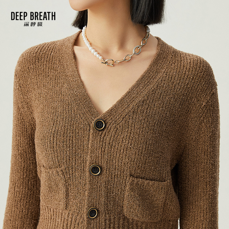 DEEP BREATH深呼吸女装 V领口袋针织开衫短款针织衫上衣A401066